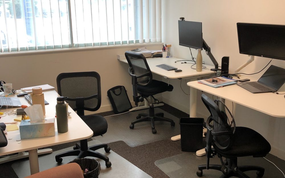 • One space with three private offices off a private hallway